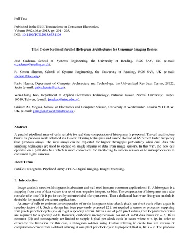 C-slow retimed parallel histogram architectures for consumer imaging devices.