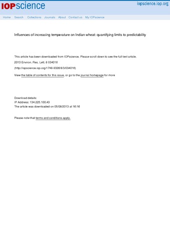Influences of increasing temperature on Indian wheat: quantifying limits to predictability.