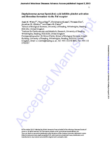 Waller, A. K., Sage, T., Kumar, C., Carr, T., Gibbins, J. M. ORCID: https://orcid.org/0000-0002-0372-5352 and Clarke, S. R.