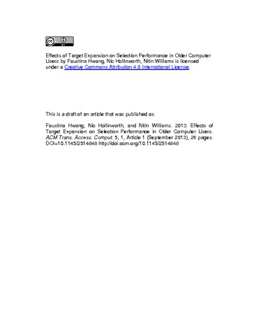 LEE, D., KWON, S, CHUNG, M. K. 2012. Effects of user age and target-expansion methods on target-acquisition tasks