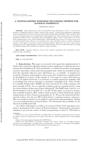 Reich, S. (2013) A nonparametric ensemble transform method for Bayesian inference. SIAM Journal on Scientific Computing, 35 (4). A2013-A2024. ISSN 1095-7197 doi: 10.1137/130907367