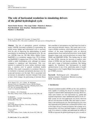 The role of horizontal resolution in simulating drivers of the global hydrological cycle.