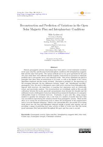 Reconstruction and prediction of variations in the open solar magnetic flux and interplanetary conditions.