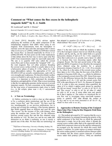 Lockwood, M. orcid id iconORCID: https://orcid.org/0000-0002-7397-2172 and Owens, M. J. orcid id iconORCID: https://orcid.org/0000-0003-2061-2453 (2013) Comment on “What causes the flux excess in the heliospheric magnetic field?” by E. J. Smith. Journal of Geophysical Research: Space Physics, 118 (5). pp. 1880-1887. ISSN 2169-9402 doi: 10.1002/jgra.50223
