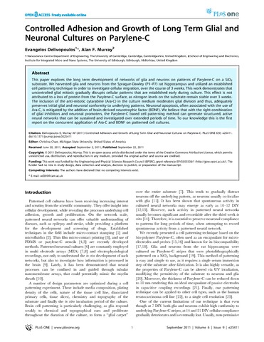 Delivopoulos, E. orcid id iconORCID: https://orcid.org/0000-0001-6156-1133 and Murray, A. F. (2011) Controlled adhesion and growth of long term glial and neuronal cultures on Parylene-C. PLoS ONE, 6 (9). ISSN 1932-6203 doi: 10.1371/journal.pone.0025411