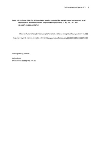 I see happy people: attention bias towards happy but not angry facial expressions in Williams syndrome.