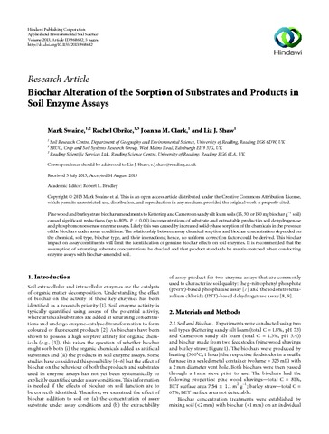 Biochar alteration of the sorption of substrates and products in Soil Enzyme Assays.