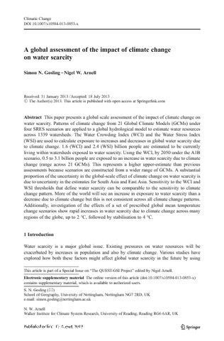 Gosling, S. N. and Arnell, N. W. orcid id iconORCID: https://orcid.org/0000-0003-2691-4436 (2016) A global assessment of the impact of climate change on water scarcity. Climatic Change, 134 (3). pp. 371-385. ISSN 0165-0009 doi: 10.1007/s10584-013-0853-x