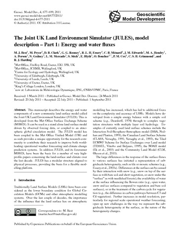 Best, M. J., Pryor, M., Clark, D. B., Rooney, G. G., Essery, R. L. H., Ménard, C. B., Edwards, J. M., Hendry, M. A., Porson, A., Gedney, N., Mercado, L. M., Sitch, S., Blyth, E., Boucher, O., Cox, P. M., Grimmond, C.S.B. ORCID: https://orcid.org/0000-0002-3166-9415 and Harding, R. J.
