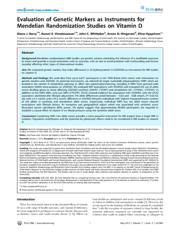 Berry, D. J., Vimaleswaran, K. S. ORCID: https://orcid.org/0000-0002-8485-8930, Whittaker, J. C., Hingorani, A. D. and Hyppönen, E.