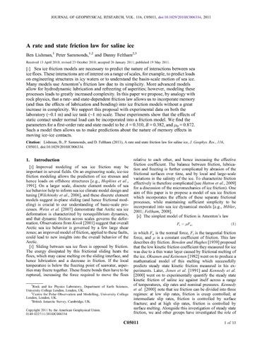 Lishman, B., Sammonds, P. R. and Feltham, D. L. orcid id iconORCID: https://orcid.org/0000-0003-2289-014X (2011) A rate and state friction law for saline ice. Journal of Geophysical Research, 116. C05011. ISSN 0148-0227 doi: 10.1029/2010JC006334