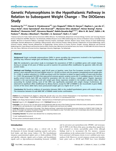 Genetic polymorphisms in the hypothalamic pathway in relation to subsequent weight change--the DiOGenes study.
