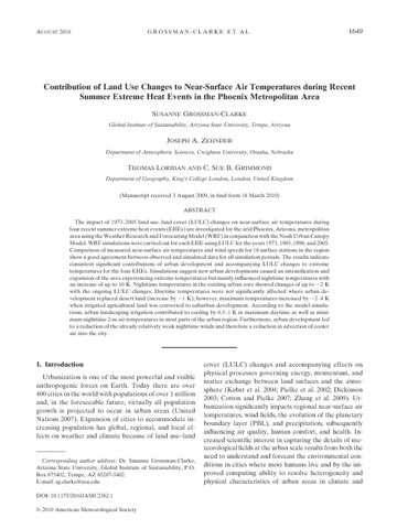 Contribution of land use changes to near-surface air temperatures during recent summer extreme heat events in the Phoenix Metropolitan Area.