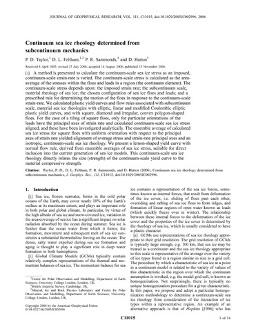 Taylor, P. D., Feltham, D. L. orcid id iconORCID: https://orcid.org/0000-0003-2289-014X, Sammonds, P. R. and Hatton, D. (2006) Continuum sea ice rheology determined from subcontinuum mechanics. Journal of Geophysical Research, 111 (C11). C11015. ISSN 0148-0227 doi: 10.1029/2005JC002996