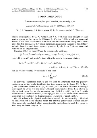 CORRIGENDUM: Flow-induced morphological instability of a mushy layer