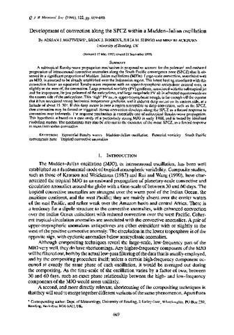 Matthews, A. J., Hoskins, B. J., Slingo, J. M. and Blackburn, M. (1996) Development of convection along the SPCZ within a Madden-Julian oscillation. Quarterly Journal of the Royal Meteorological Society, 122 (531). pp. 669-688. ISSN 1477-870X doi: 10.1002/qj.49712253106