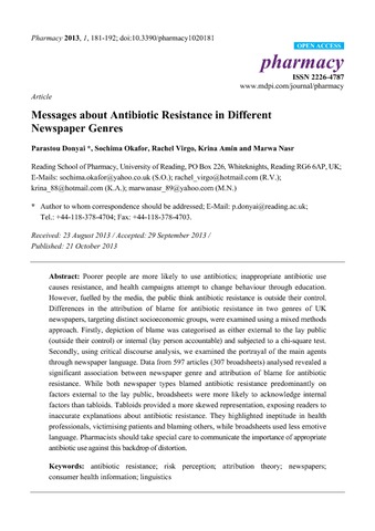 Poorer people are more likely to use antibiotics; inappropriate antibiotic use causes resistance, and health campaigns attempt to change behaviour through education. However, fuelled by the media, the public think antibiotic resistance is outside their control. Differences in the attribution of blame for antibiotic resistance in two genres of UK newspapers, targeting distinct socioeconomic groups, were examined using a mixed methods approach. Firstly, depiction of blame was categorised as either external to the lay public (outside their control) or internal (lay person accountable) and subjected to a chi-square test. Secondly, using critical discourse analysis, we examined the portrayal of the main agents through newspaper language. Data from 597 articles (307 broadsheets) analysed revealed a significant association between newspaper genre and attribution of blame for antibiotic resistance. While both newspaper types blamed antibiotic resistance predominantly on factors external to the lay public, broadsheets were more likely to acknowledge internal factors than tabloids. Tabloids provided a more skewed representation, exposing readers to inaccurate explanations about antibiotic resistance. They highlighted ineptitude in health professionals, victimising patients and blaming others, while broadsheets used less emotive language. Pharmacists should take special care to communicate the importance of appropriate antibiotic use against this backdrop of distortion.