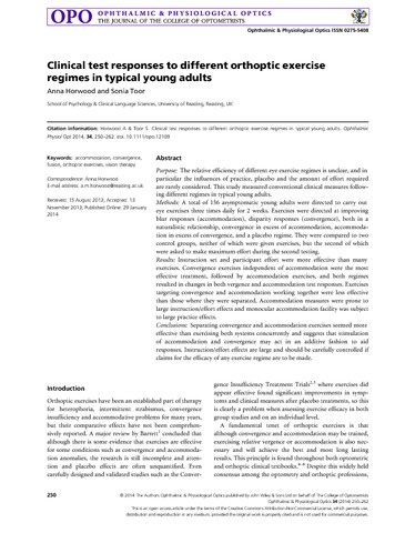 Clinical test responses to different orthoptic exercise regimes in typical young adults.