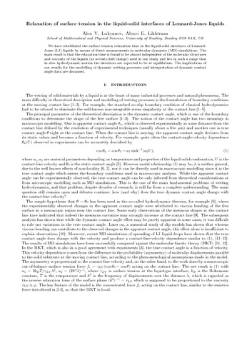 Lukyanov, A. and Likhtman, A. (2013) Relaxation of surface tension in the liquid-solid interfaces of Lennard-Jones liquids. Langmuir, 29 (46). pp. 13996-14000. ISSN 0743-7463 doi: 10.1021/la403421b