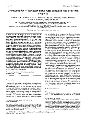 Nunn, A. V., Barnard, M. L., Bhakoo, K., Murray, J., Chilvers, E. J. and Bell, J. D. (1996) Characterisation of secondary metabolites associated with neutrophil apoptosis. FEBS Letters, 392 (3). pp. 295-298. ISSN 0014-5793 doi: 10.1016/0014-5793(96)00839-3