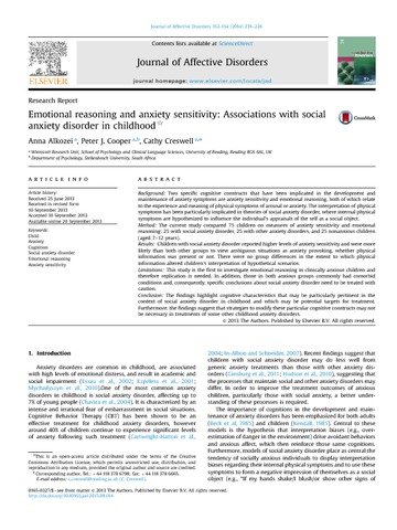 Background Two specific cognitive constructs that have been implicated in the development and maintenance of anxiety symptoms are anxiety sensitivity and emotional reasoning, both of which relate to the experience and meaning of physical symptoms of arousal or anxiety. The interpretation of physical symptoms has been particularly implicated in theories of social anxiety disorder, where internal physical symptoms are hypothesized to influence the individual's appraisals of the self as a social object. Method The current study compared 75 children on measures of anxiety sensitivity and emotional reasoning: 25 with social anxiety disorder, 25 with other anxiety disorders, and 25 nonanxious children (aged 7–12 years). Results Children with social anxiety disorder reported higher levels of anxiety sensitivity and were more likely than both other groups to view ambiguous situations as anxiety provoking, whether physical information was present or not. There were no group differences in the extent to which physical information altered children's interpretation of hypothetical scenarios. Limitations This study is the first to investigate emotional reasoning in clinically anxious children and therefore replication is needed. In addition, those in both anxious groups commonly had comorbid conditions and, consequently, specific conclusions about social anxiety disorder need to be treated with caution. Conclusion The findings highlight cognitive characteristics that may be particularly pertinent in the context of social anxiety disorder in childhood and which may be potential targets for treatment. Furthermore, the findings suggest that strategies to modify these particular cognitive constructs may not be necessary in treatments of some other childhood anxiety disorders.