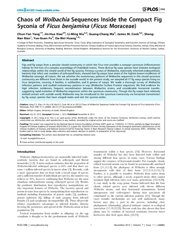 Hughes, W., Yang, C.-Y., Xiao, J.-H., Niu, L.-M., Ma, G.-C., Cook, J. M., Bian, S.-N., Fu, Y.-G. and Huang, D.-W. (2012) Chaos of Wolbachia Sequences Inside the Compact Fig Syconia of Ficus benjamina (Ficus: Moraceae). PLoS ONE, 7 (11). e48882. ISSN 1932-6203 doi: 10.1371/journal.pone.0048882