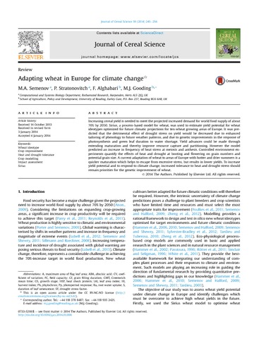 Semenov, M.A., Stratonovitch, P., Alghabari, F. and Gooding, M.J. (2014) Adapting wheat in Europe for climate change. Journal of Cereal Science, 59 (3). pp. 245-256. ISSN 0733-5210 doi: 10.1016/j.jcs.2014.01.006
