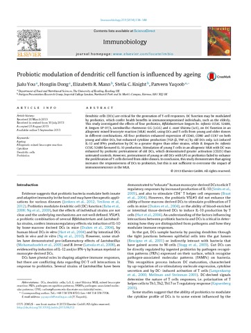 Probiotic modulation of dendritic cell function is influenced by ageing.