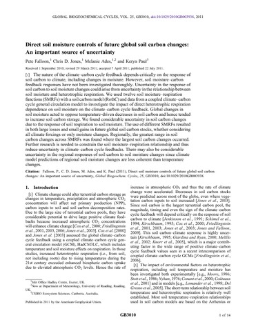 Fallon, P., Jones, C. D., Ades, M. and Paul, K. (2011) Direct soil moisture controls of future global soil carbon changes: An important source of uncertainty. Global Biogeochemical Cycles, 25 (3). GB3010. ISSN 1944-9224 doi: 10.1029/2010GB003938