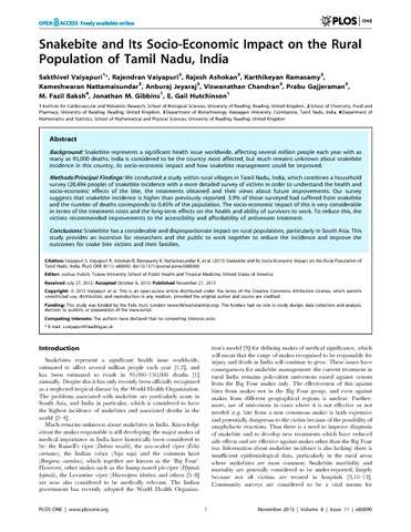 Uncontrolled Keywords | snakebite, India, socio-economic, cost, snake, viper, cobra, Russell's viper, saw-scaled viper, Indian cobra, krait. |