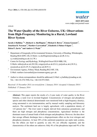 Halliday, S. J., Skeffington, R. A., Bowes, M. J., Gozzard, E., Newman, J. R., Loewenthal, M., Palmer-Felgate, E. J., Jarvie, H. P. and Wade, A. J.