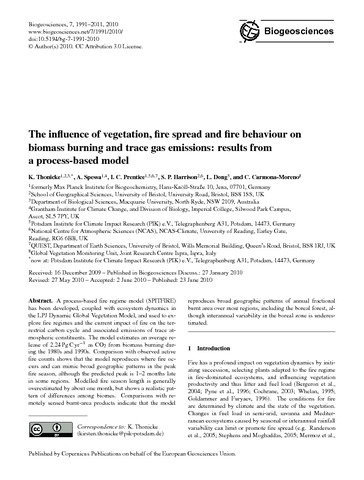 The influence of vegetation, fire spread and fire behaviour on biomass burning and trace gas emissions: results from a process-based model.