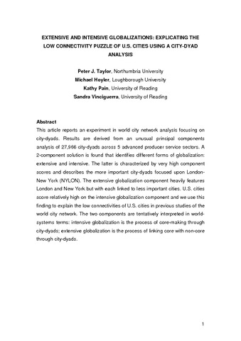 Extensive and intensive globalizations: explicating the low connectivity puzzle of U.S. cities using a city-dyad analysis.