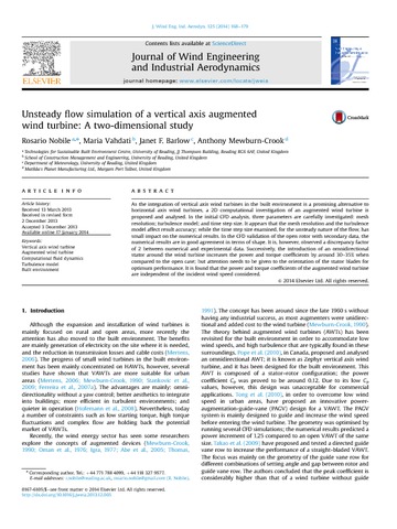 Nobile, R., Vahdati, M. orcid id iconORCID: https://orcid.org/0009-0009-8604-3004, Barlow, J. F. and Mewburn-Crook, A. (2014) Unsteady flow simulation of a vertical axis augmented wind turbine: a two-dimensional study. Journal of Wind Engineering and Industrial Aerodynamics, 125. pp. 168-179. ISSN 0167-6105 doi: 10.1016/j.jweia.2013.12.005