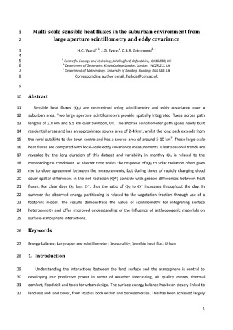 Multi-scale sensible heat fluxes in the urban environment from large aperture scintillometry and eddy covariance.