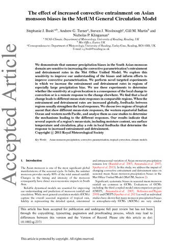 The effect of increased convective entrainment on Asian