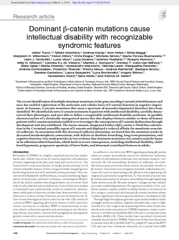 Dominant β-catenin mutations cause intellectual disability with recognizable syndromic features.