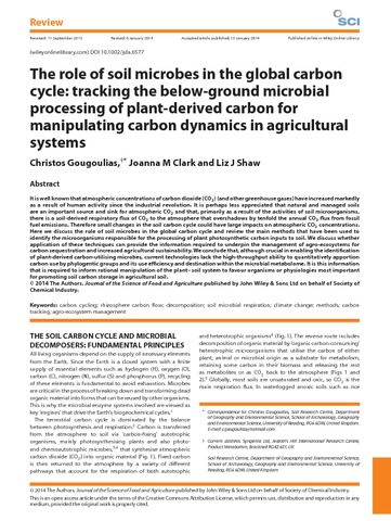 The role of soil microbes in the global carbon cycle: tracking the below-ground microbial processing of plant-derived carbon for manipulating carbon dynamics in agricultural systems.