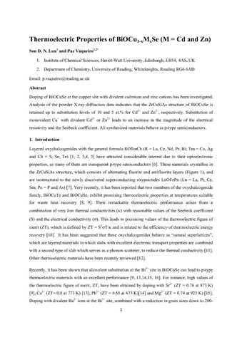 Thermoelectric properties of BiOCu1-xMxSe (M = Cd and Zn).