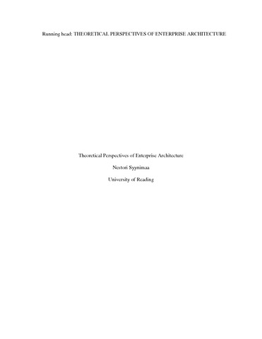 Syynimaa, N. (2013) Theoretical perspectives of enterprise architecture. In: Theoretical Perspectives of Enterprise Architecture. 4th Nordic EA Summer School, EASS 2013, 2013, Helsinki, Finland.
