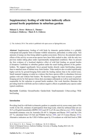 Supplementary feeding of wild birds indirectly affects ground beetle populations in suburban gardens.