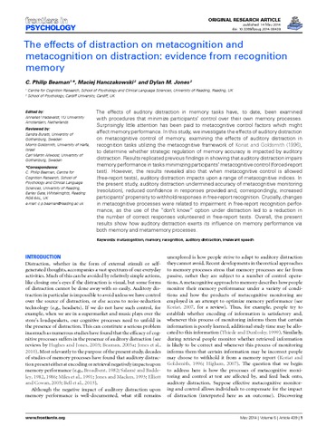 The effects of distraction on metacognition and metacognition on distraction: evidence from recognition memory.