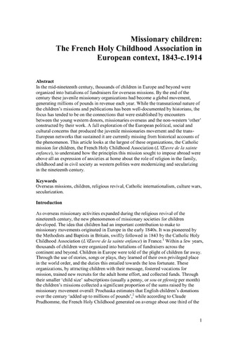 Missionary children: The French Holy Childhood Association in European context, 1843-c.1914.