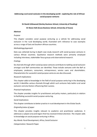 Littlewood, D. and Holt, D. (2015) Addressing rural social exclusion in the developing world - exploring the role of African social purpose ventures. In: Exploring rural enterprises: new perspectives on research, policy & practice. Contemporary issues in entrepreneurship research, 4. Emerald, Bingley. ISBN 9781784411121