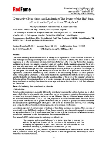 Destructive behaviours and leadership: the source of the shift from a functional to dysfunctional workplace?