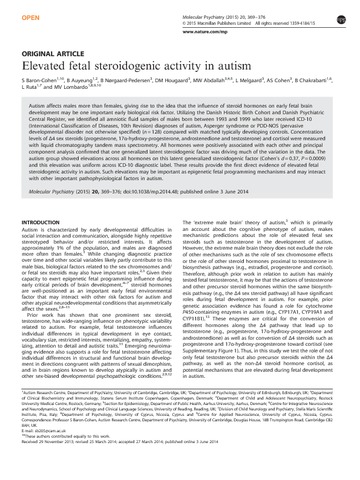 Baron-Cohen, S., Auyeung, B., Nørgaard-Pedersen, B., Hougaard, D. M., Abdallah, M. W., Melgaard, L., Cohen, A. S., Chakrabarti, B.