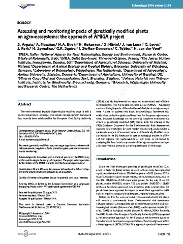 Assessing and monitoring impacts of genetically modified plants on agro-ecosystems: the approach of AMIGA project.