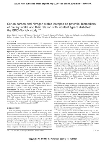 Serum carbon and nitrogen stable isotopes as potential biomarkers of dietary intake and their relation with incident type 2 diabetes: the EPIC-Norfolk study.