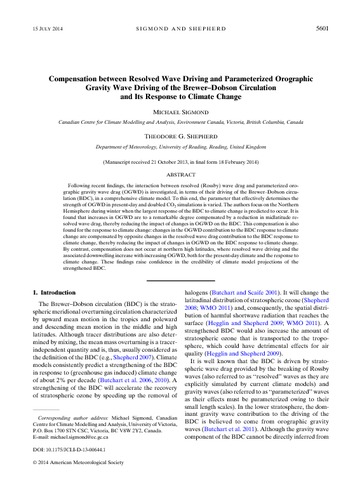 Compensation between resolved wave driving and parameterized orographic gravity wave driving of the Brewer–Dobson circulation and its response to climate change.