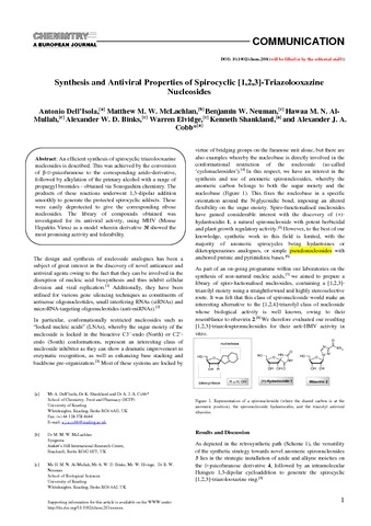 Uncontrolled Keywords alkynes;antiviral agents;cycloaddition;nucleosides;spiro compounds